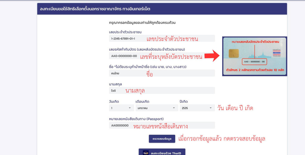 วิธีการลงทะเบียนเลือกตั้งนอกราชอาณาจักรด้วยตนเองทางอินเทอร์เน็ต